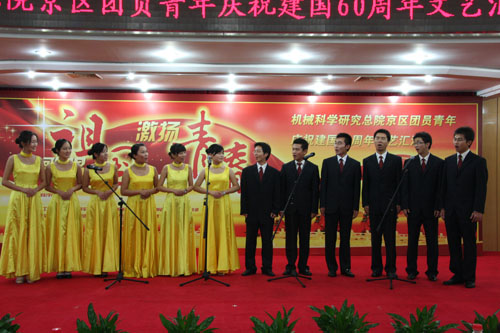 9月25日,由機(jī)械科學(xué)研究總院團(tuán)委主辦、京區(qū)各直屬單位團(tuán)委(總支)協(xié)辦的“歌唱祖國(guó)激揚(yáng)青春——機(jī)械總院京區(qū)團(tuán)員慶祝建國(guó)60周年文藝匯演”在京隆重舉行。李新亞院長(zhǎng)、王露霞副書(shū)記、王德成副院長(zhǎng)、總院工會(huì)王曉明主席以及總院直屬單位的有關(guān)領(lǐng)導(dǎo)、總部職能部門負(fù)責(zé)人、京區(qū)直屬單位的團(tuán)員青年代表和院總部全體員工參加了大會(huì)。王露霞副書(shū)記代表總院領(lǐng)導(dǎo)向與會(huì)青年員工表達(dá)了親切的問(wèn)候和節(jié)日祝福,并勉勵(lì)大家勤奮學(xué)習(xí)、努力工作、成長(zhǎng)成才,為總院的發(fā)展壯大發(fā)揮積極作用。